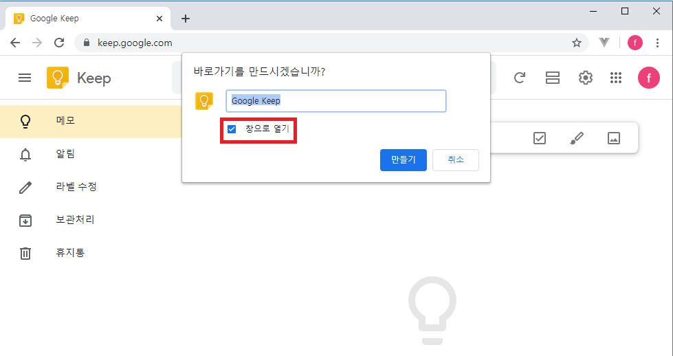 2. 창으로 열기 선택