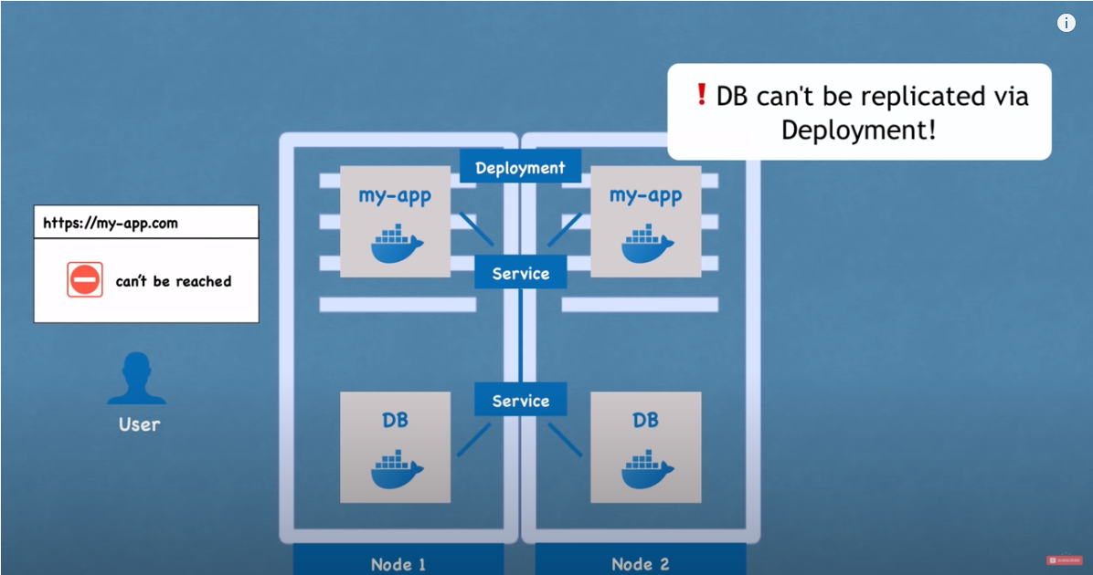 - 그러나 사용하기가 어렵기 때문에 보통 DB는 쿠버네티스 클러스터 밖에서 생성하여 사용한다.