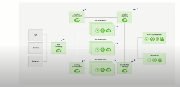 - spring cloud config: 각각의 마이크로 서비스는 구성 환경이 다를 가능성이 큼. 각각의 환경을 중앙 집중식으로 만들 수 있다.